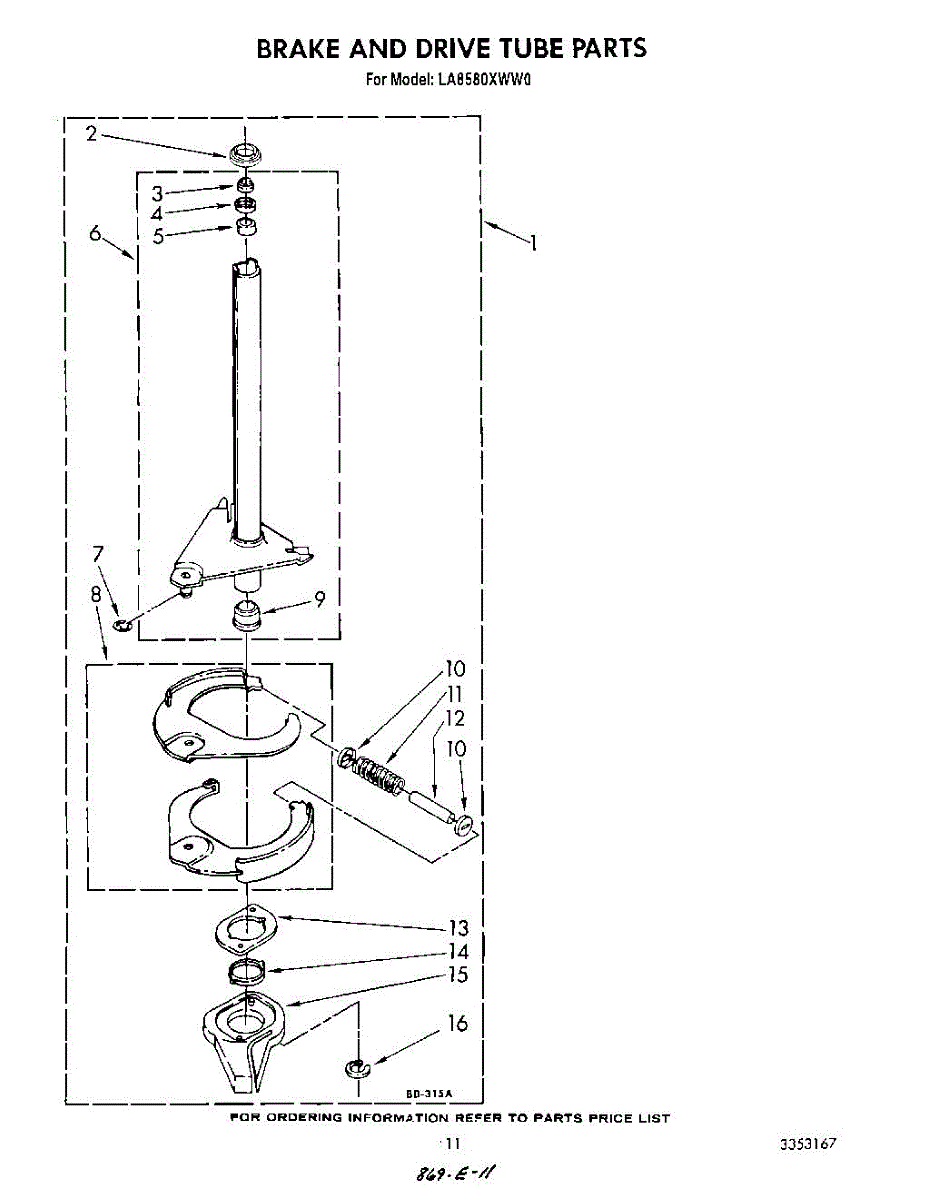 Parts for Whirlpool LA8580XWG0: 09 - Brake And Drive Tube Parts