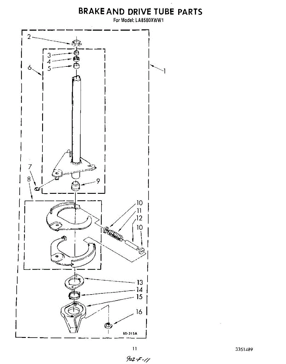 Parts for Whirlpool LA8580XWN1: 09 - Brake And Drive Tube Parts