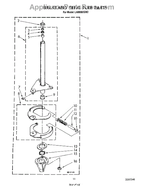Parts for Whirlpool LA8800XSW2: 09 - Brake And Drive Tube Parts