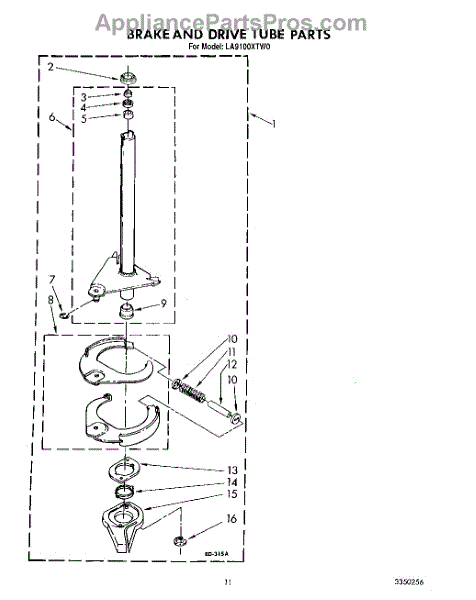 Parts for Whirlpool LA9100XTM0: 09 - Brake And Drive Tube Parts