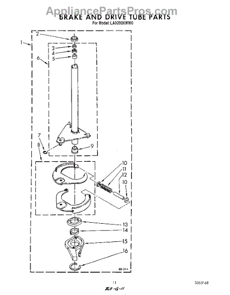 Parts for Whirlpool LA9200XWM0: 09 - Brake And Drive Tube Parts