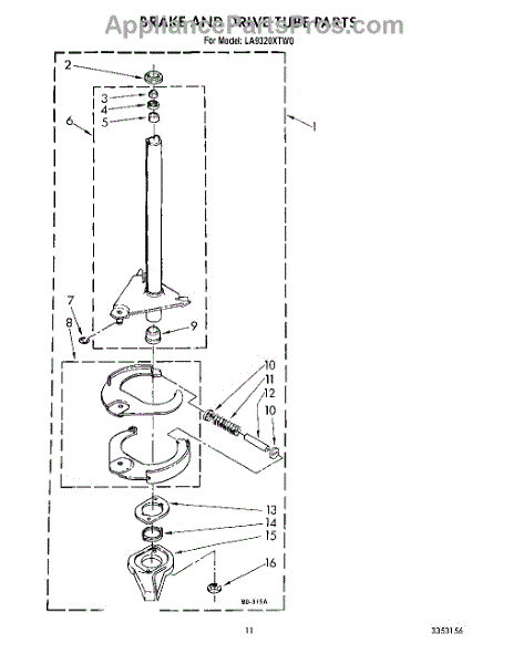 Parts for Whirlpool LA9320XTW0: 09 - Brake And Drive Tube Parts