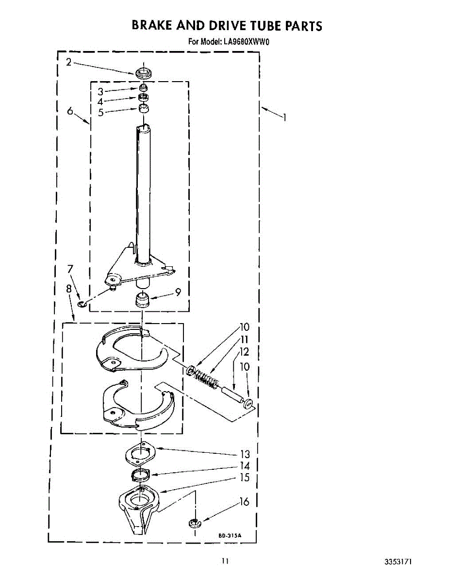 Parts for Whirlpool LA9680XWM0: 09 - Brake And Drive Tube Parts