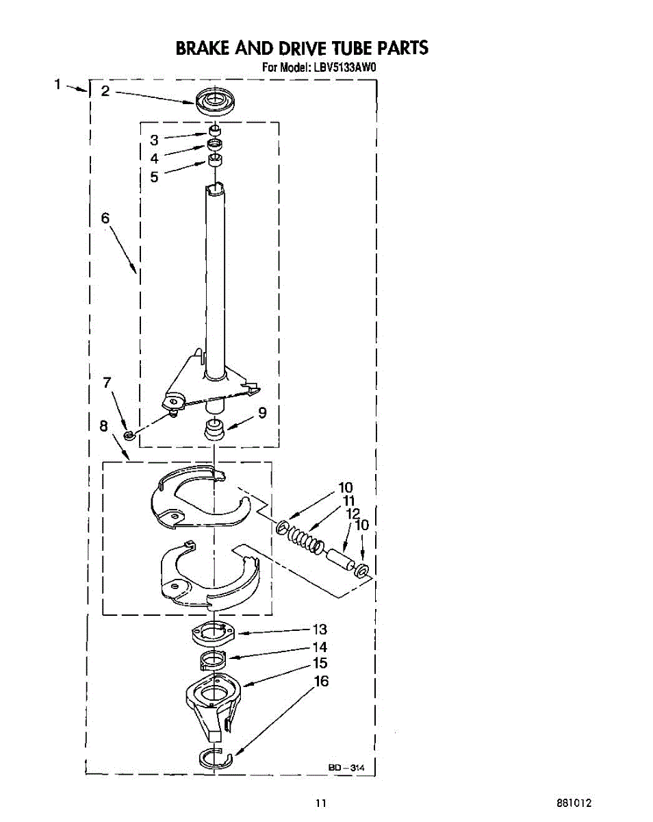 Parts for Whirlpool LBV5133AG0: 09 - Brake And Drive Tube Parts