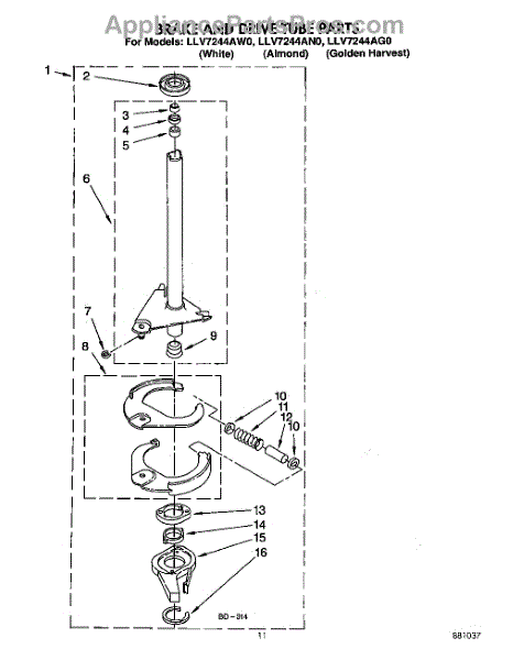 Parts for Whirlpool LLV7244AW0: 09 - Brake And Drive Tube Parts