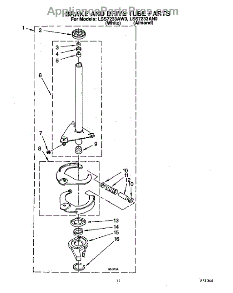 Parts for Whirlpool LSS7233AW0: 09 - Brake And Drive Tube Parts