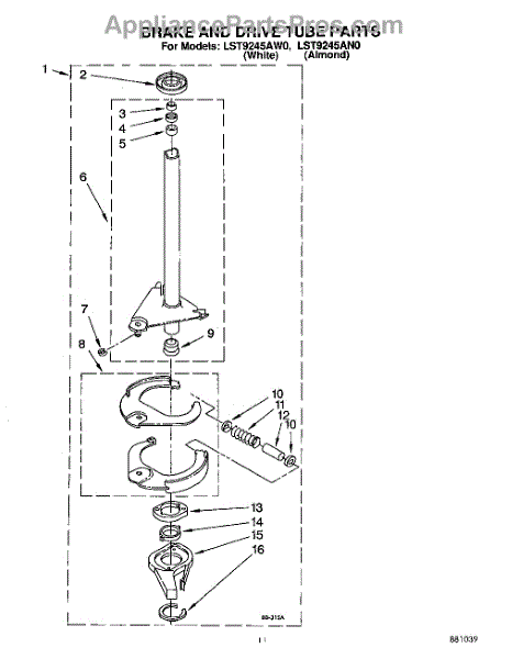 Parts for Whirlpool LST9245AW0: 09 - Brake And Drive Tube Parts