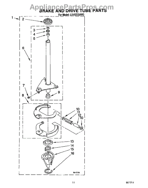 Parts for Whirlpool LSV6233AG0: 09 - Brake And Drive Tube Parts