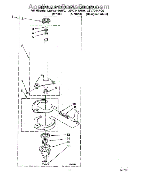 Parts for Whirlpool LSV7244AW0: 09 - Brake And Drive Tube Parts