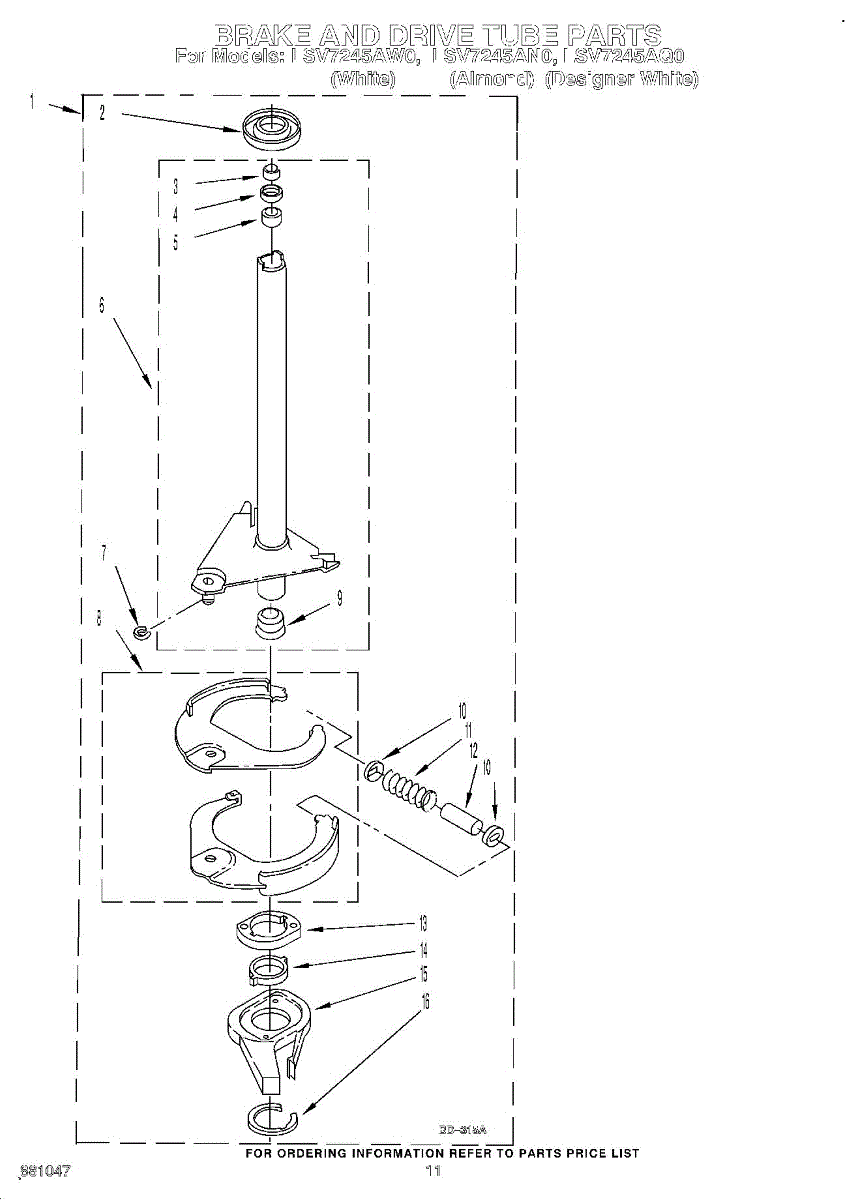 Parts for Whirlpool LSV7245AQ0: 09 - Brake And Drive Tube Parts