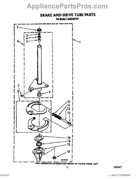 Parts for Whirlpool LA5580XTW1: 09 - Brake And Tube Parts