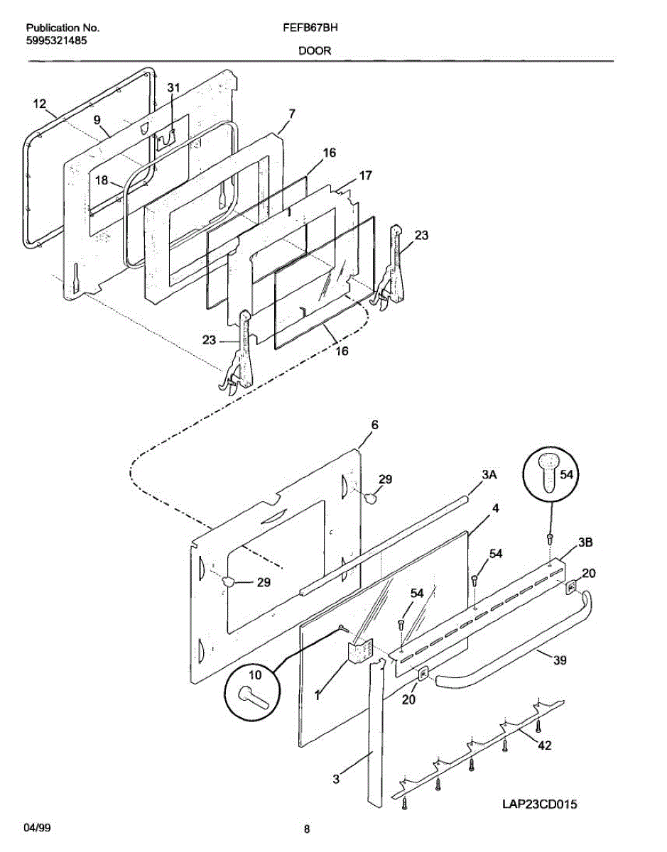 Parts for Frigidaire FEFB67BHDA: 09 - Door Parts