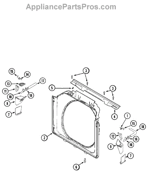 This hinge cover is a small trim piece that conceals the door hinge and mounting screws. Replace a cracked or missing cover to restore a clean, finished look and help keep lint and debris out of the hinge cavity.