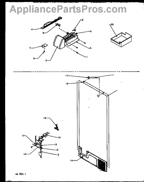 • Interfaces with the auger/crusher assembly in dispenser-equipped models