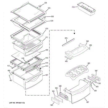 The Fruit and Vegetable Pan Shelf is an OEM part for GE refrigerators. Designed to provide sturdy support and optimal storage for fruit and vegetable pans, this shelf is an essential component for organizing and accessing your produce with ease. It fits snugly above the fruit and vegetable drawers, maximizing space utilization within the fridge and helping maintain the freshness of fruits and vegetables by ensuring proper air circulation around them.