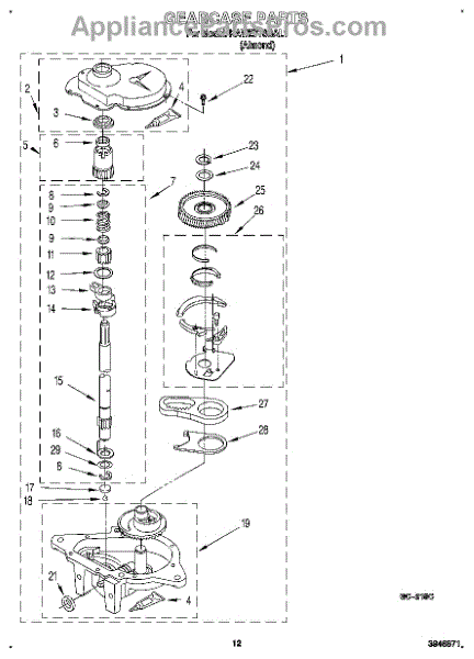 • Replacement requires accessing the agitator/gearcase per the OEM service manual and may involve transmission/gearcase disassembly.