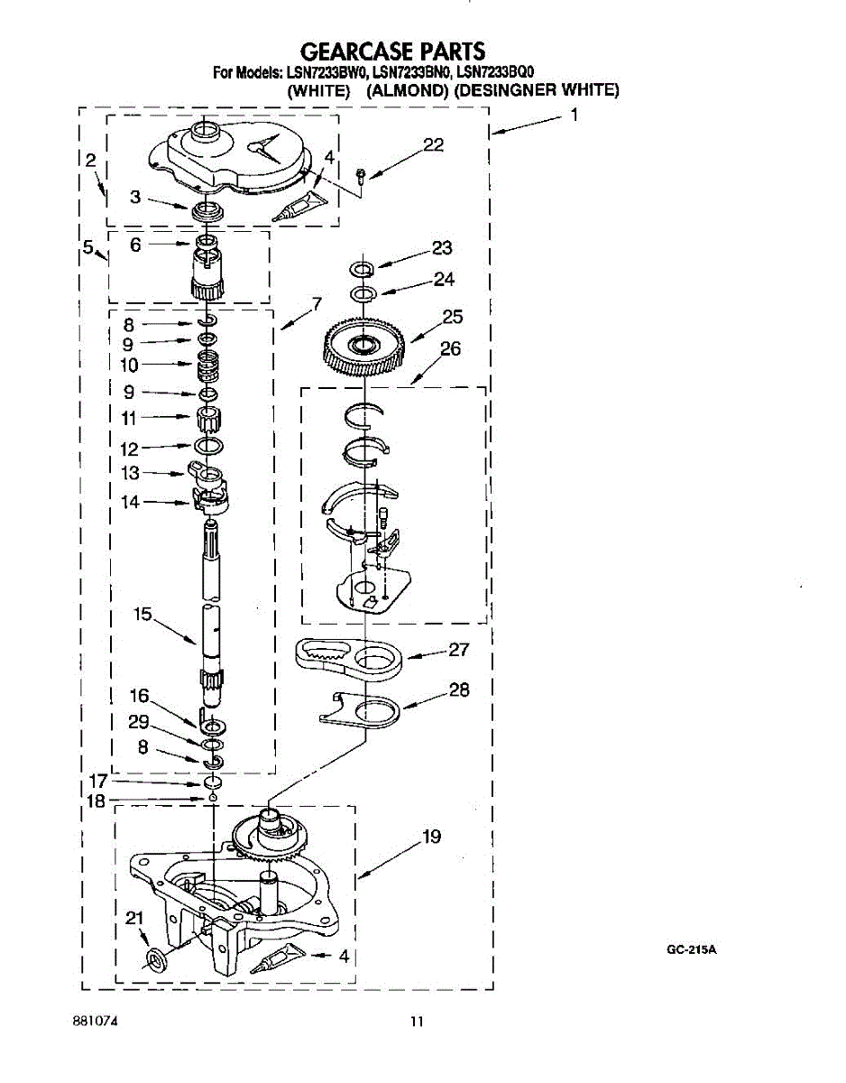Parts for Whirlpool LSN7233BW0: 09 - Gearcase Parts