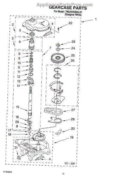 Parts for Whirlpool 7MSAWS800LQ1: 09 - Gearcase Parts