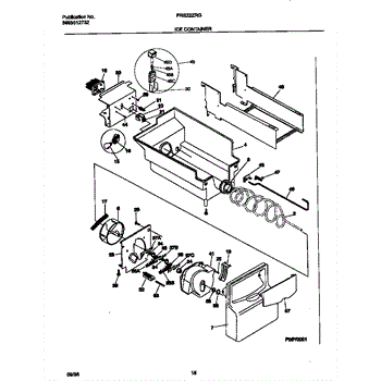 The Ice Container Assembly is an OEM replacement part for Frigidaire refrigerators. This component serves as the storage bin or receptacle for the ice produced by the icemaker, providing a convenient and accessible location for the ice.