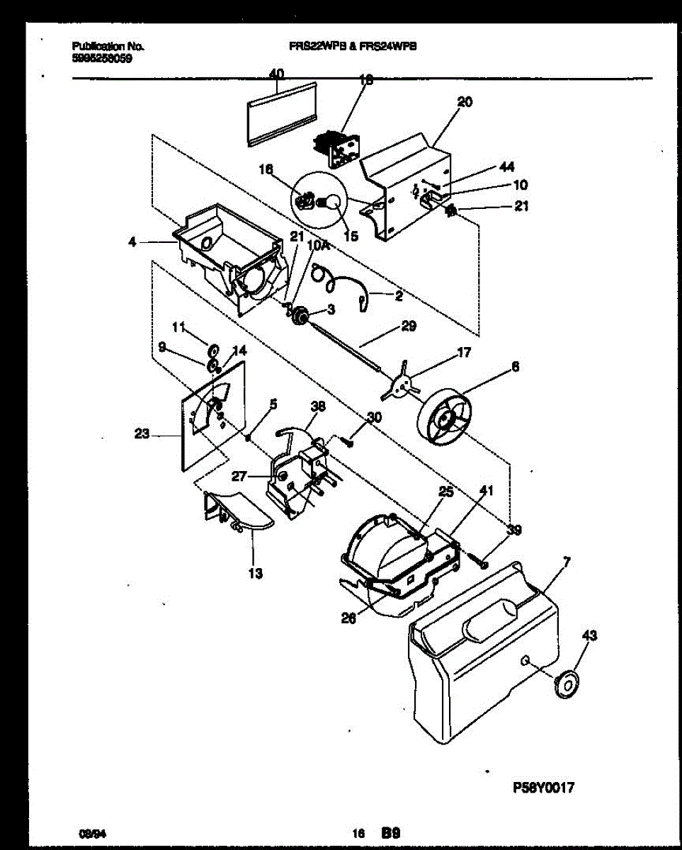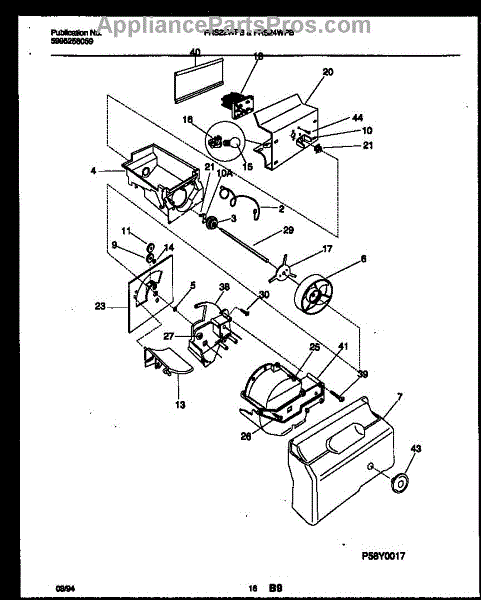 This auger motor powers the ice dispenser, rotating the ice-bin auger to feed cubes or crushed ice to the door chute. A failed motor stops dispensing, leaving ice in the bucket when the paddle or lever is pressed.