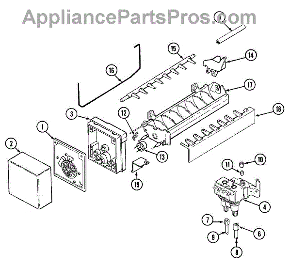 This replacement ejector is the plastic arm that pushes harvested ice cubes out of the ice mold and into the storage bin, helping restore proper ice ejection and reduce ice that sticks inside the tray. What it does: