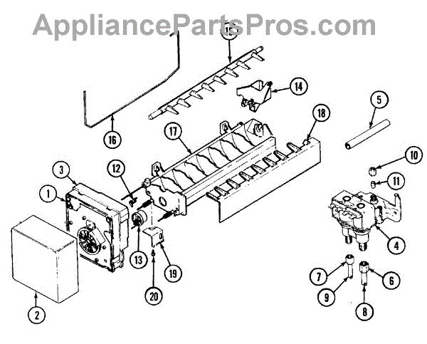 This replacement ejector is the plastic arm that pushes harvested ice cubes out of the ice mold and into the storage bin, helping restore proper ice ejection and reduce ice that sticks inside the tray. What it does: