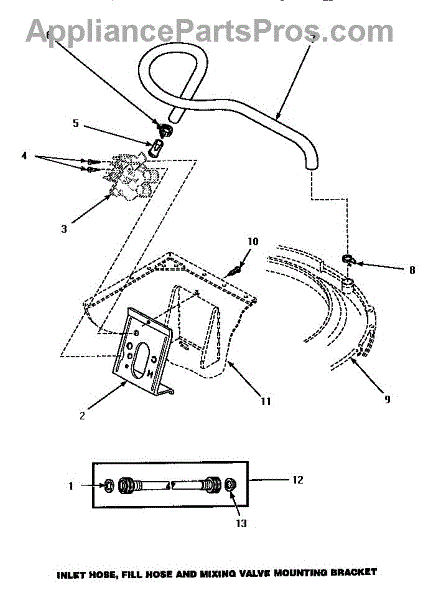 Parts for Amana AWM472W2: 09 - Inlet / Fill Hose & Mixing Vlv Mtg Brkt Parts