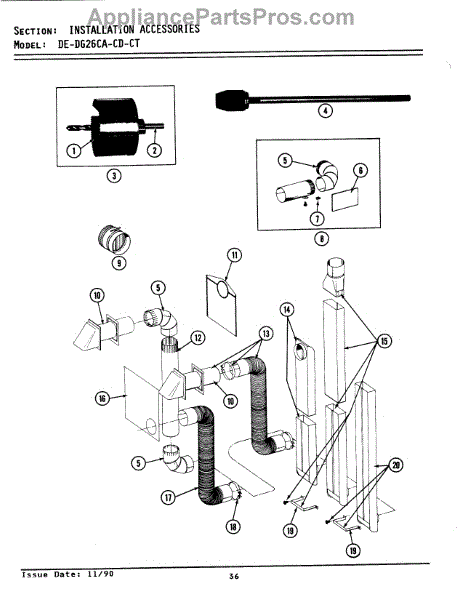 Venting pipe for dryer exhaust system. Connects dryer to external vent. Replace if cracked, damaged, or deteriorated to maintain proper airflow.