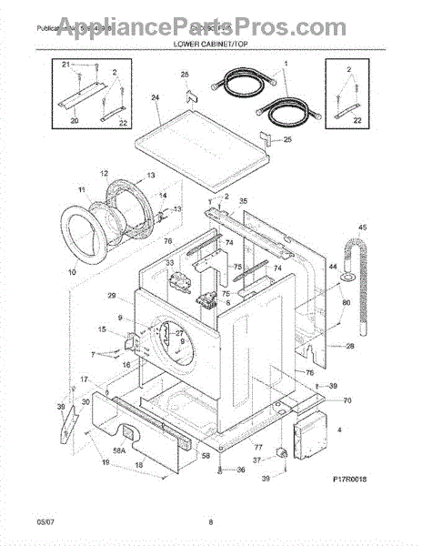 This drain hose ring secures the washer's drain hose to the tub or drain outlet to help maintain a watertight connection and prevent leaks. It's a direct-fit replacement for the original ring used on compatible Frigidaire washers. What it does: