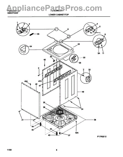 This genuine OEM part is a washer lid. The washer lid is the main piece that covers the washer. Over time, a washer lid can become damaged to the point where it no longer closes securely. If the washer lid is no longer closing all the way or is severely cracked or damaged, it will need to be replaced.To replace this part, start by making sure the washer is unplugged. After it has been powered off, proceed to take a putty knife to lift to release the two retaining clips that secure the washer's main top. Once released, proceed to remove the lid lock assembly wire connector. Fully remove the main top and set it upside down. Release the tension on the lid springs and detach the springs from the main top and hinge bars. Using a Phillips head screwdriver, remove the screws that secure the hinge bars to the lid. Push the hinge bars through the bearings then twist the bars to remove them. This will separate the lid from the main top. Take the new lid and align it with the main top. Insert the hinge bar between the main top and bearing while threading the screws to secure the new top. Reinstall the top panel and connect the wire harness. This replacement part is sourced directly from the manufacturer and is compatible with Frigidaire, Electrolux, Gibson, Kelvinator, and Westinghouse brand washers.