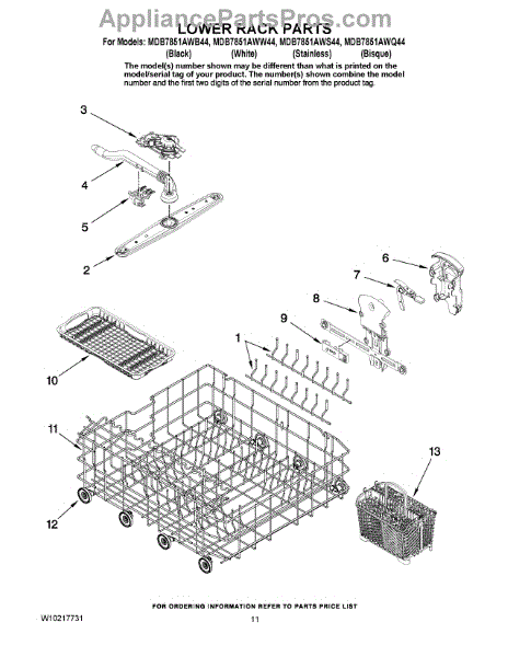 Parts for Maytag MDB7851AWQ44: 09 - Lower Rack Parts
