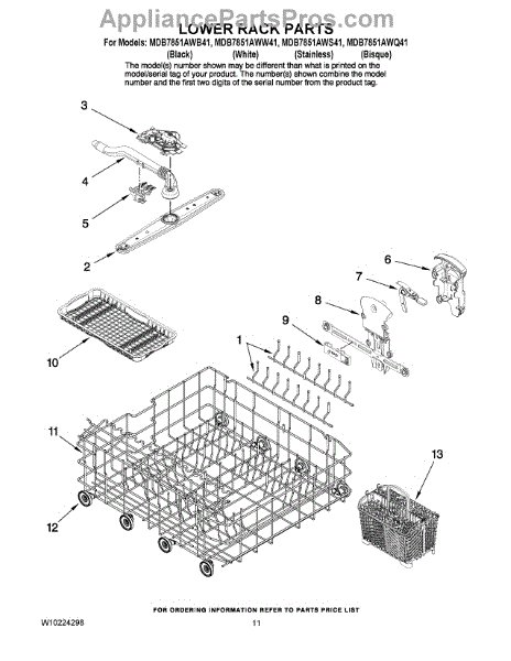 Parts for Maytag MDB7851AWW41: 09 - Lower Rack Parts