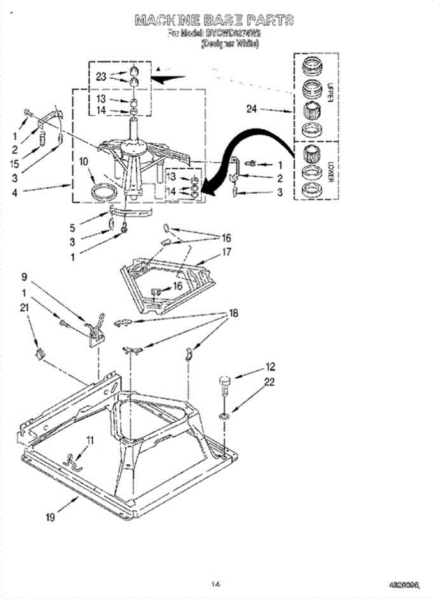 Supports the spin basket on the center post for smooth, quiet rotation. Replace if your washer is noisy, vibrating excessively, or has poor spin performance.