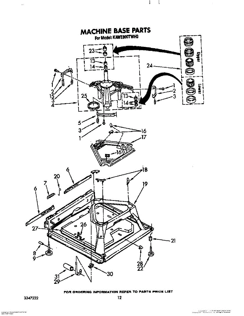 Used for direct drive washing machines. Complete assembly includes 2 level mechanism links, 1 level mechanism spring, 1 knurled pin, 2 rear feet, 1 pad plate, 1 suspension plate, 1 base pad, and 1 suspension spring retainer.