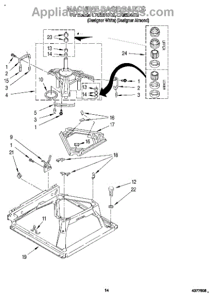 The Bearing and Seal Kit is an OEM component for Whirlpool and KitchenAid front-load washing machines. The kit includes 2 center post bearings, 3 agitator shaft seals, and 1 center post seal. These internal seals help retain lubrication inside the motor shaft housing, while the bearings allow for smooth rotation of critical components like the drive pulley. Continuous belt rubbing and water exposure diminish their lifespan over time. Symptoms of worn motor seals or bearings include: