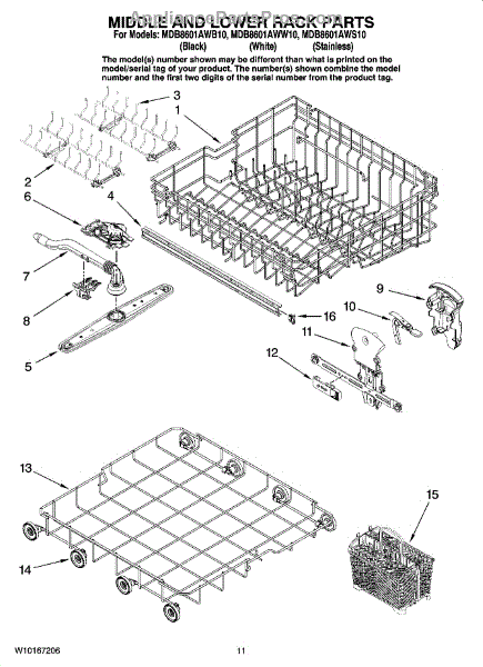 Upper dishwasher rack adjuster assembly. Right hand side. For the left hand side order WPW10153530.