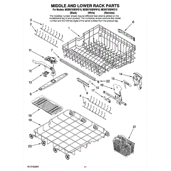 This lower dishwasher rack fold away row tine can be used for both the left and right hand side. Color: light gray. Measures about 3-1/2 inches high by 10 inches deep.