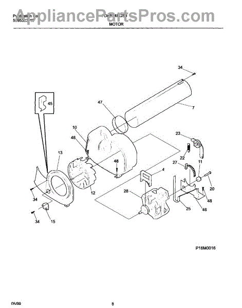 The Motor is an OEM part for Frigidaire dryers. It is responsible for driving the drum rotation in the dryer, allowing for the tumbling and drying of clothes. It converts electrical energy into mechanical motion, providing the necessary power to spin the drum and circulate air for efficient drying.