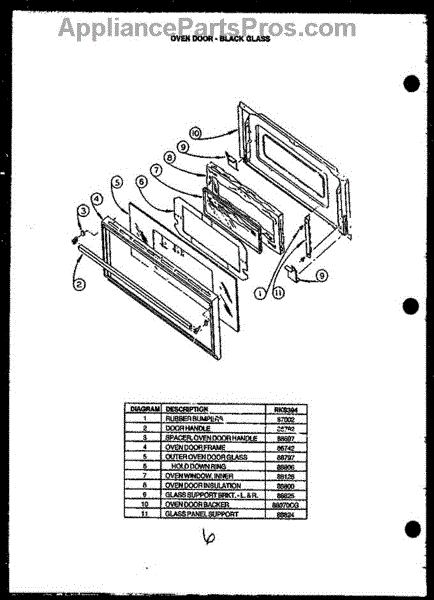 Parts for Amana RKS394: 09 - Oven Door - Black Glass Parts