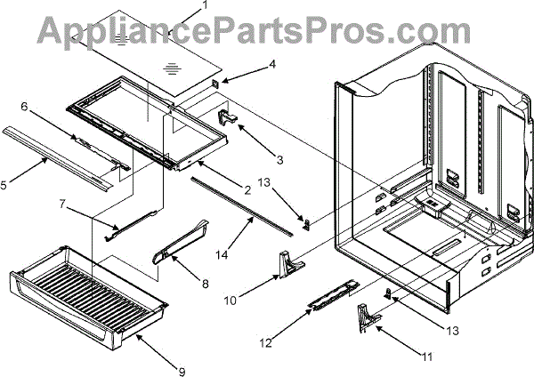 The Crisper Shelf Frame is an OEM part for Whirlpool side-by-side refrigerators. It provides sturdy tracked support for organizing vegetables and other produce items in the crisper drawers. The glass and center support are NOT included and must be ordered separately.