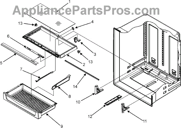 Replacement pantry tunnel that restores the pantry drawer's alignment and helps maintain proper airflow and sealing in the pantry compartment. Restores smooth sliding and proper compartment performance for affected refrigerators. What it does: