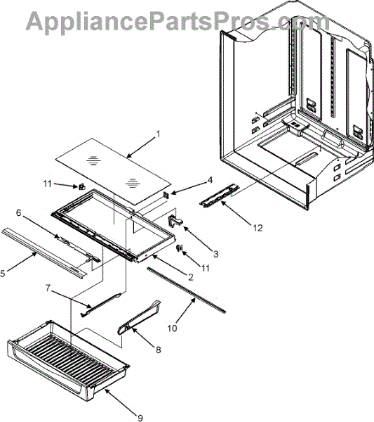 • Provides a smooth sliding surface and alignment for the deli/pantry drawer