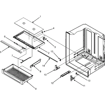 The Deli Drawer Track supports and guides the pantry/meat drawer in the refrigerator's fresh food section. Replacing a worn or broken track restores smooth, level drawer movement and helps prevent sticking, sagging, or the drawer coming off its rails.