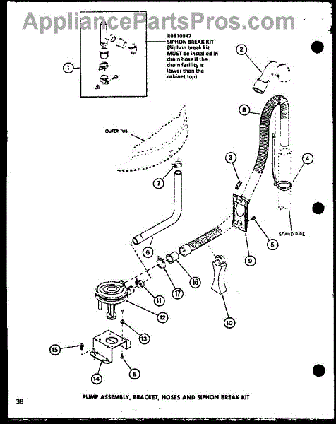 Secures washing machine hoses to prevent leaks in the water system. Replace if damaged, corroded, or connections are loose. Verify fit by part number.