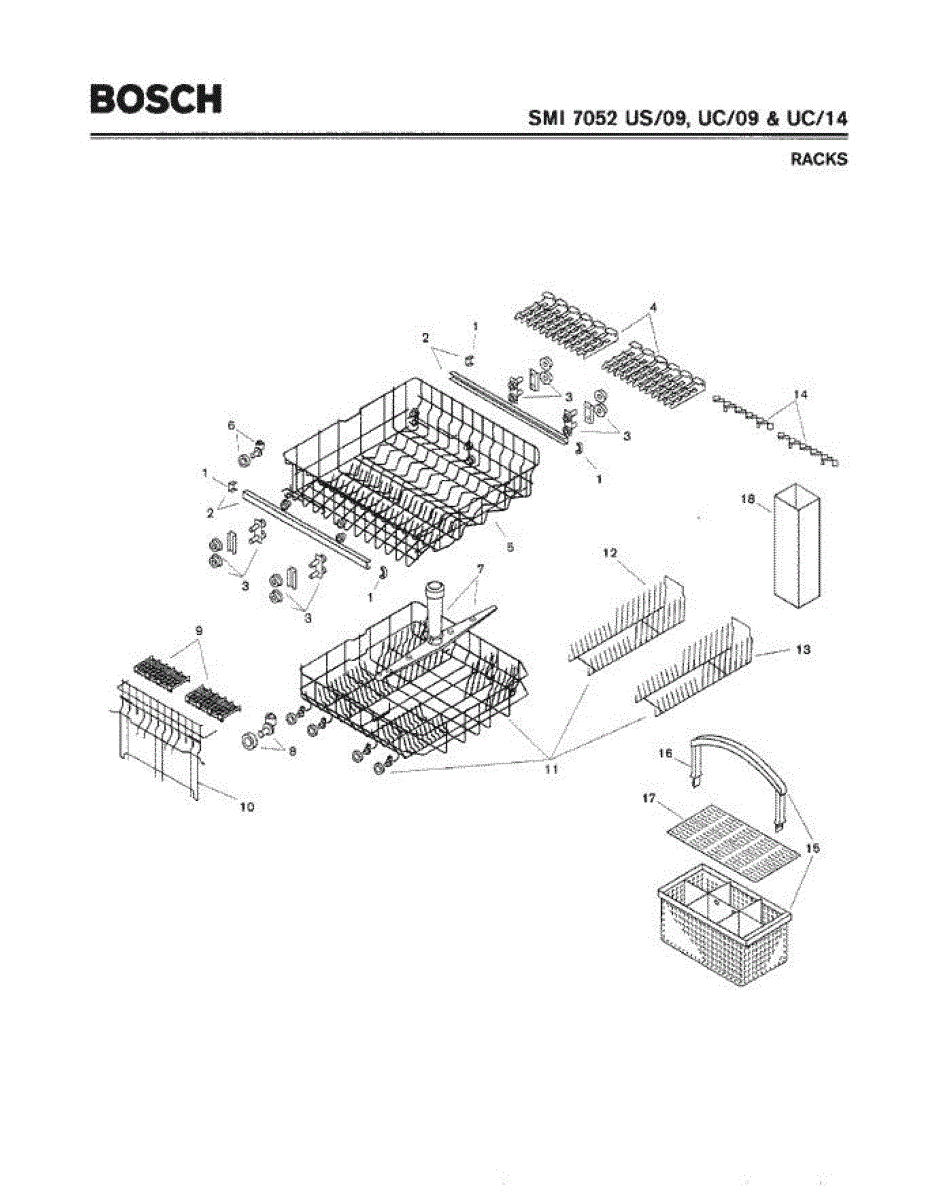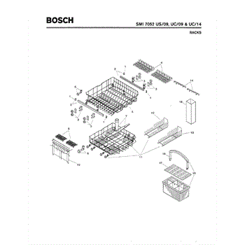 The Silverware Basket Assembly is an OEM part for Bosch dishwashers. This basket is located in the lower rack and is used to hold utensils securely during the wash cycle.