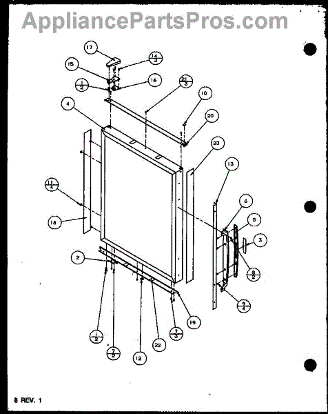 Mounting screw secures panels, brackets, and trim to the appliance frame. Replace if screw is stripped, missing, or damaged to restore secure fastening.