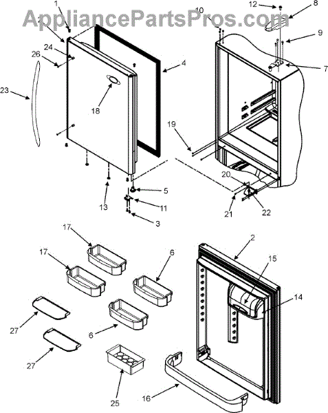 The Door Closure is an OEM replacement part for Whirlpool refrigerators. It is a small component that the door rides on that allows it to open and close properly. Causes of impaired operation involve age-related spring coil fatigue, dislodged or cracked plastic housing pieces, or confined door alignment stripping closure grooves. Symptoms of a faulty closure include: