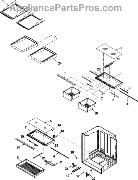 The Crisper Shelf Frame is an OEM part for Whirlpool side-by-side refrigerators. It provides sturdy tracked support for organizing vegetables and other produce items in the crisper drawers. The glass and center support are NOT included and must be ordered separately.