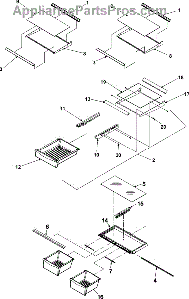 Note: For the right side drawer glide, use part number WP67001053