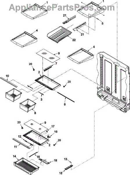 A replacement pantry divider that helps separate and stabilize items on the refrigerator pantry shelf for neater storage and fewer tipped containers. Restores proper spacing and organization inside the pantry area. What it does: